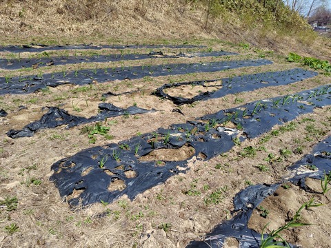さとほろのマルチは鹿に穴だらけにされ、さとほろ自体も4割程食べられていた。
