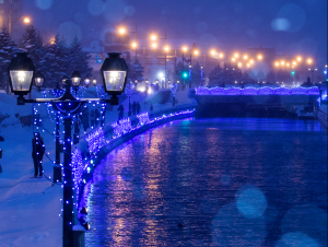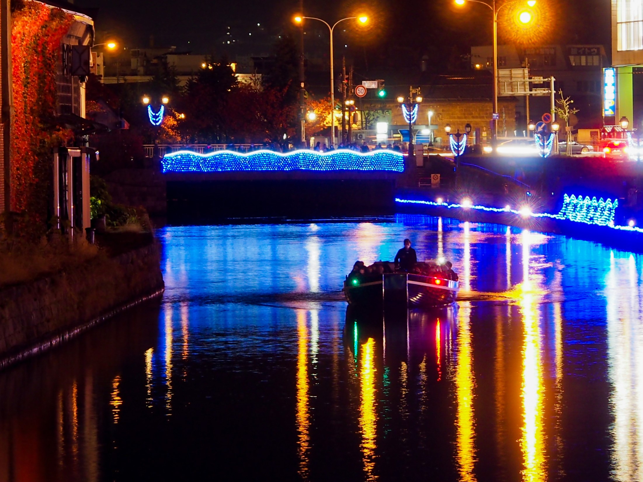 小樽運河は11月から1月の3ヵ月間、約1万球の青色の電飾が施されます。
